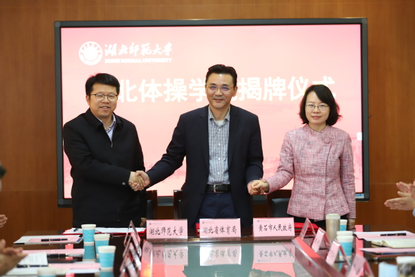 (4月13日,湖北体操学院揭牌仪式在科技大楼505会议室举行)