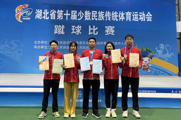 本网讯 2023年4月18日到4月22日,湖北省第十届少数民族传统体育运动会在宜昌市举行。我校民族式摔跤代表队获得一金三银七铜的优异成绩,蹴球队获得二等奖和三等奖,女同性恋做爱 李志鸿老师获优秀教练员称号。