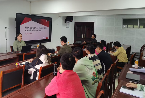 讲座中,Toby Mündel教授深刻探讨了关于女性运动员的体温调节、运动表现是否会因为月经周期的不同而有所差异、女性月经周期是否会影响在炎热环境下铁代谢及炎症反应,从运动生理的专业视角出发指导学生如何解决理论联系实际的问题,提高科学研究的积极性,进而将研究的广度与深度不断拓展开来。Toby Mündel教授还提到科研工作顶层设计和逻辑论证过程的重要性,“想清楚”和“如何做”是非常关键的两个步骤,倘若没有解决好这些问题,研究进行过程中则会四处碰壁。