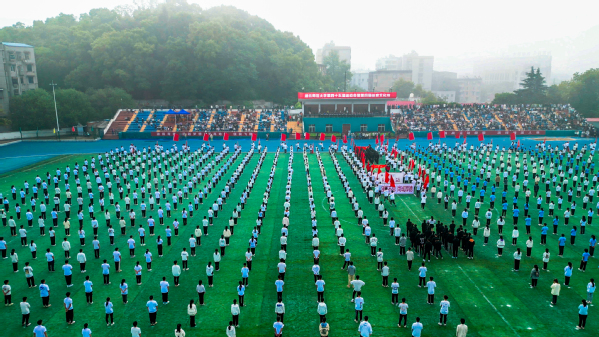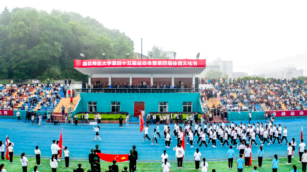 由17个学院代表队组成的千人广播体操拉开了大型演出的帷幕,整齐划一的动作随富有节奏的旋律将青春舞动;活力四射、轻快有力的校园健身操、技巧啦啦操表演绽放出耀眼的芳华本色;轻盈飘逸、热情饱满的体育舞蹈展现出湖师学子蓬勃的朝气。精彩纷呈、各具特色的文艺表演结束后,各运动项目有序展开。运动员们斗志昂扬、奋力拼搏,以舍我其谁的气势席卷赛场,以团结进取的精神尽展光辉。