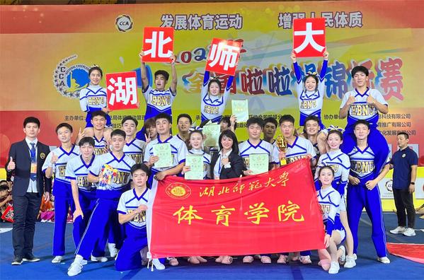 本次比赛由国家体育总局体操运动管理中心、中国蹦床与技巧协会主办,在贵州省安顺市奥体中心开赛。比赛分为幼小组和中大组两个组别进行,来自全国的2500名运动员参赛。我校啦啦操队坚持常年刻苦训练,讲究训练方式方法,集体克难攻坚,学习掌握技术动作,团结互助共同进步,在赛场上挥洒自如,表现出湖师人敢于拼搏的精神风貌和青春风采。
