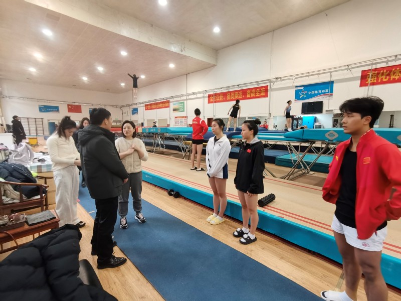 朱施成一行观看了我校学生的训练,并与同学们面对面进行交流,详细了解了他们的训练计划、生活安排以及面临的困难和挑战,对他们的专业技能和和坚韧不拔的精神给予了高度评价,并提出了殷切希望,要求他们珍惜在湖南省体操运动管理中心训练的机会,充分利用学校和体操中心提供的资源,不断提升自己,鼓励他们在学校的持续关注下,坚定信心,克服困难,迎接挑战,调整心态,努力提高自己的竞技水平,确保在最佳状态下迎接即将到来的比赛,争取在国内外赛场上取得更好的成绩,为学校争光,为国家争光。
