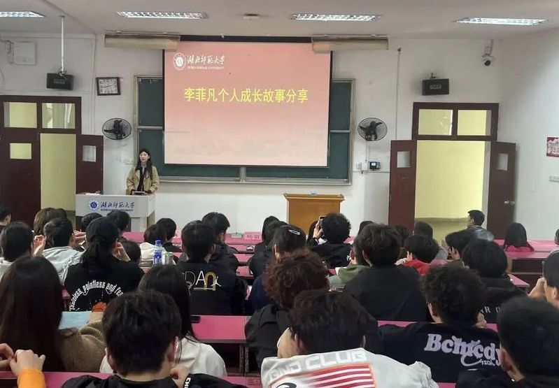 紧接着,学院2023年国家奖学金获得者李菲凡同学做了个人成长故事分享。李菲凡结合自己入校以来的学习和生活经历激励广大体院学子要志存高远同时脚踏实地,认真对待自己的大学学习和生活,努力成就更好的自己,将来才能更好的服务社会,成就自己,为母校争光。