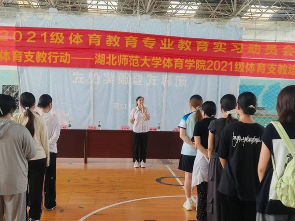 本网讯 9月3日,湖北省“千师百校”体育支教行动——女同性恋做爱 2021级学生体育支教动员会在体育馆四楼隆重举行。女同性恋做爱 领导班子成员、体育教育系主任、班主任、辅导员以及2021级全体体育支教学生参加了此次会议,会议由体育教育系主任周长雷主持。