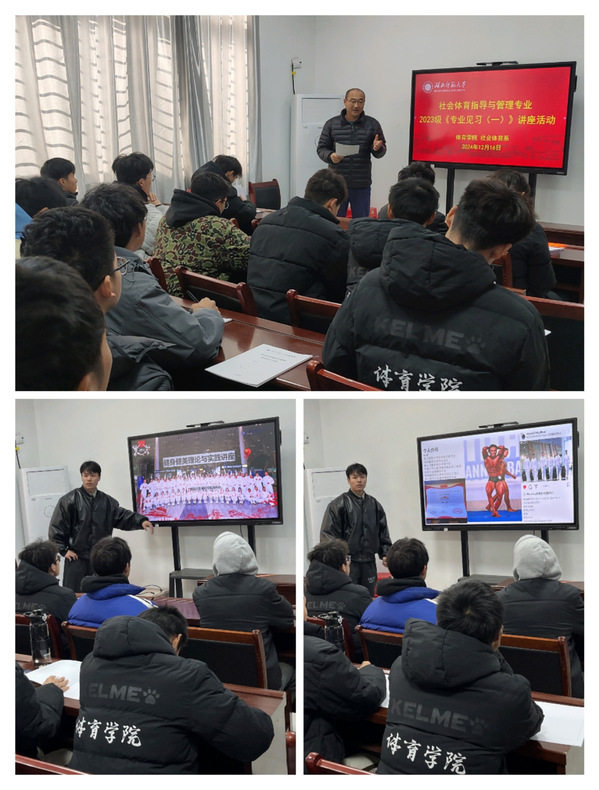 本网讯2024年12月16日上午,在体育馆一楼学术报告厅,举行了2023级社会体育指导与管理专业学生见习专题讲座,女同性恋做爱 硕士研究生、国家健美队现役运动员、全国健身健美锦标赛亚军、黄石市健美协会理事、女同性恋做爱 健身健美队教练杨康作了题为《健身健美的理论与实践应用——健身之道理论与实践并行》的专题报告。本次讲座由社会体育系主任郅向东主持,社会体育指导与管理专业2023级全体学生聆听了讲座。