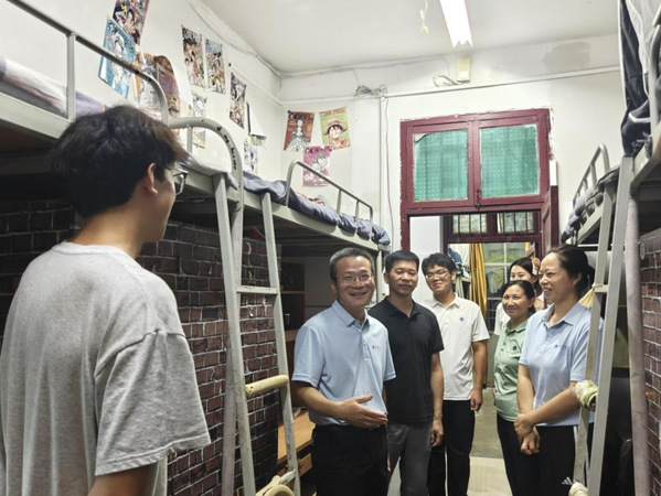 本网讯 新学期伊始,为及时掌握学生返校后的生活状况、切实筑牢宿舍安全防线、持续推进优良学风建设,8月31日晚,校党委常委、副校长胡艳军带队,学工部与人武部副部长胡红贵、学院领导班子、辅导员、班主任及学生干部共同参与,深入学生宿舍开展新学期走访慰问工作,向学生传递学校的关怀与问候。
