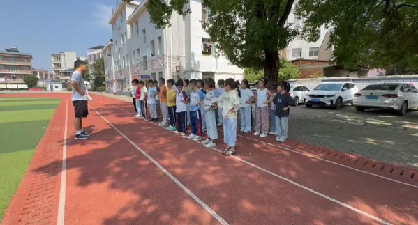 在红色塑胶跑道上,支教老师正开展热身活动专项训练。学生们横为两队,身姿挺拔、动作划一,在老师的指令下完成一系列规范动作。该套热身动作与接下来的教学内容紧密相连、相辅相成,通过科学的运动强度设计,既提升学生心肺功能与耐力素质,又强化纪律意识与集体观念,是“体教融合”理念在日常教学中的扎实落地。