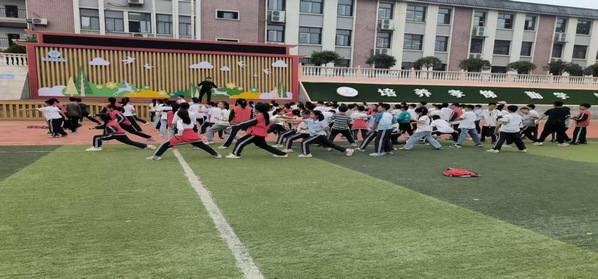 操场之上,特色武术课更是成为校园一道亮丽风景线。支教老师带领学生们演练武术招式,从马步扎稳到出拳发力,动作刚劲有力、整齐划一。这门融合“传统文化传承”与“体能训练”的特色课程,既让学生在一招一式中感受中华武术的韵律之美,又锤炼了意志品质,完美契合 “五育并举”中体育与美育、德育的融合要求。